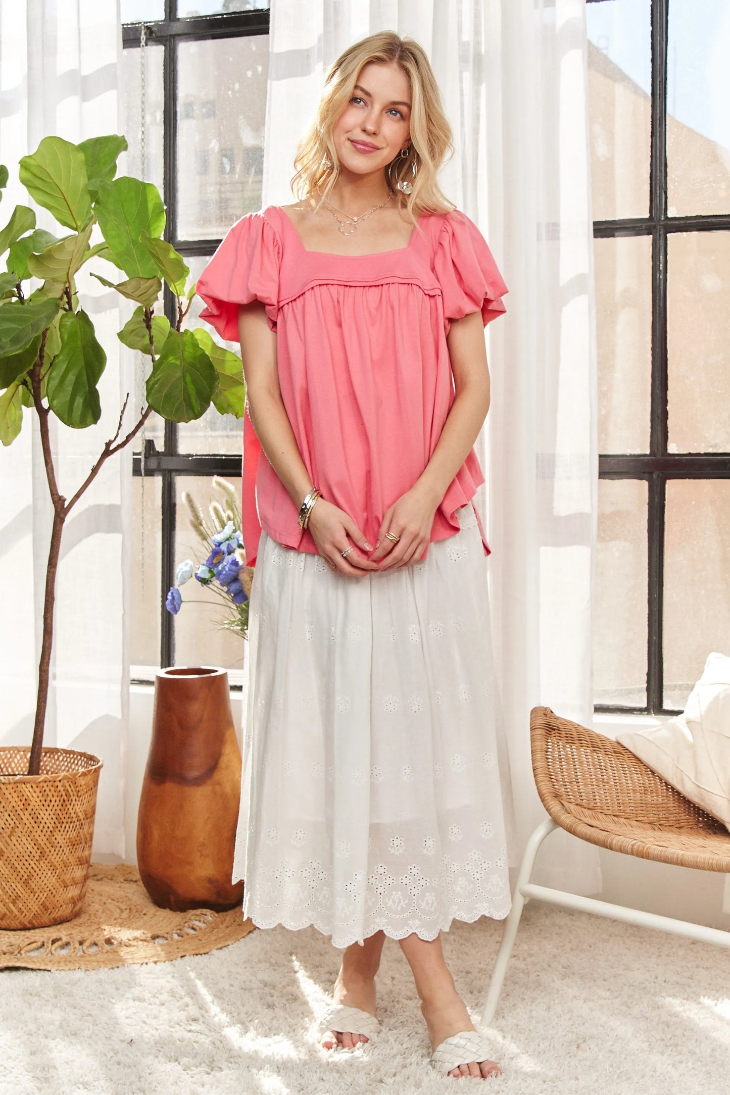 This top showcases elegant princess sleeves and is garment washed for a soft and lived-in feel. The design offers a blend of sophistication and comfort. Perfect for dressing up or down, this versatile top can be styled for various occasions. Elevate your wardrobe with the timeless charm of this princess sleeves garment washed top!